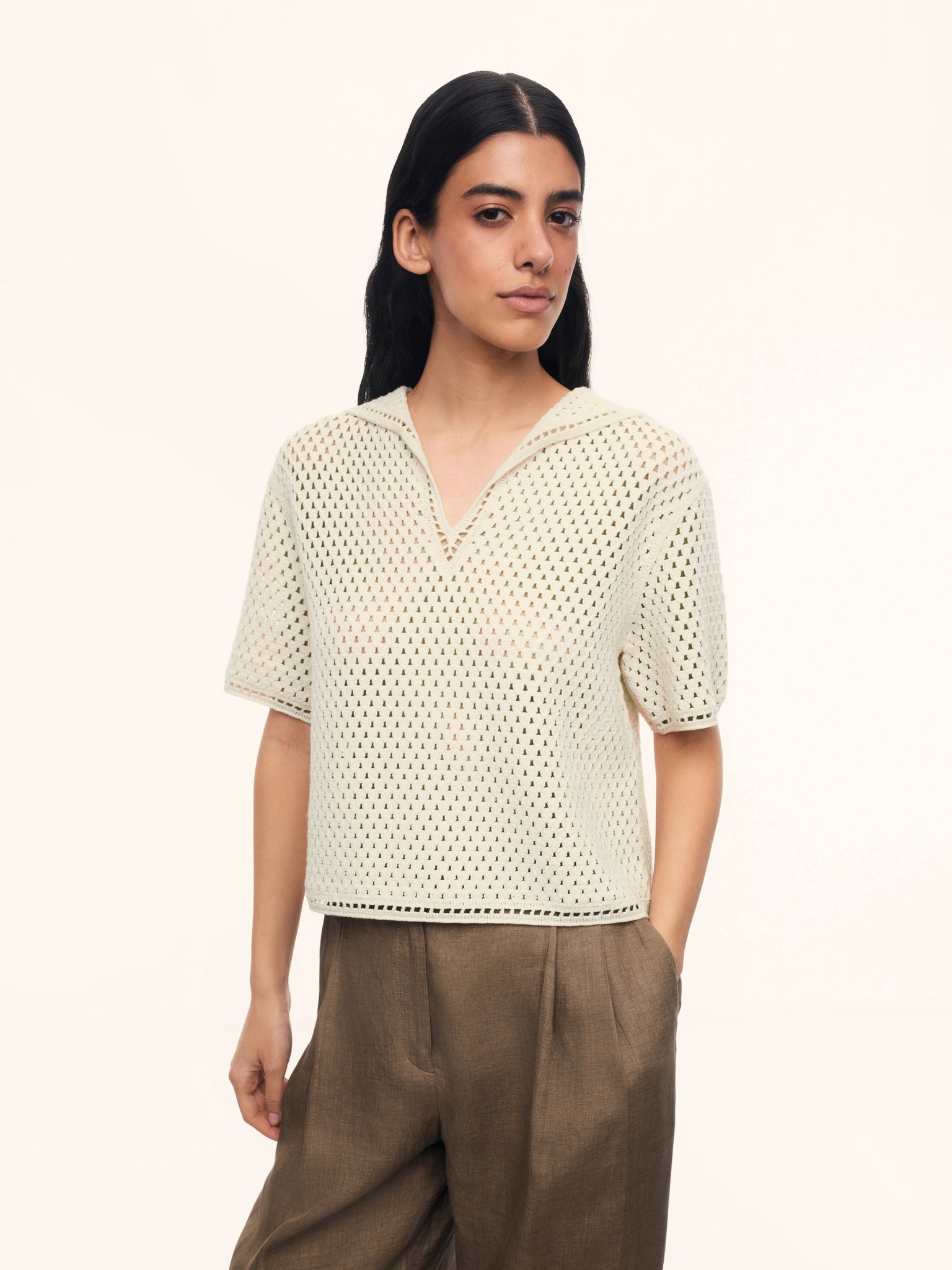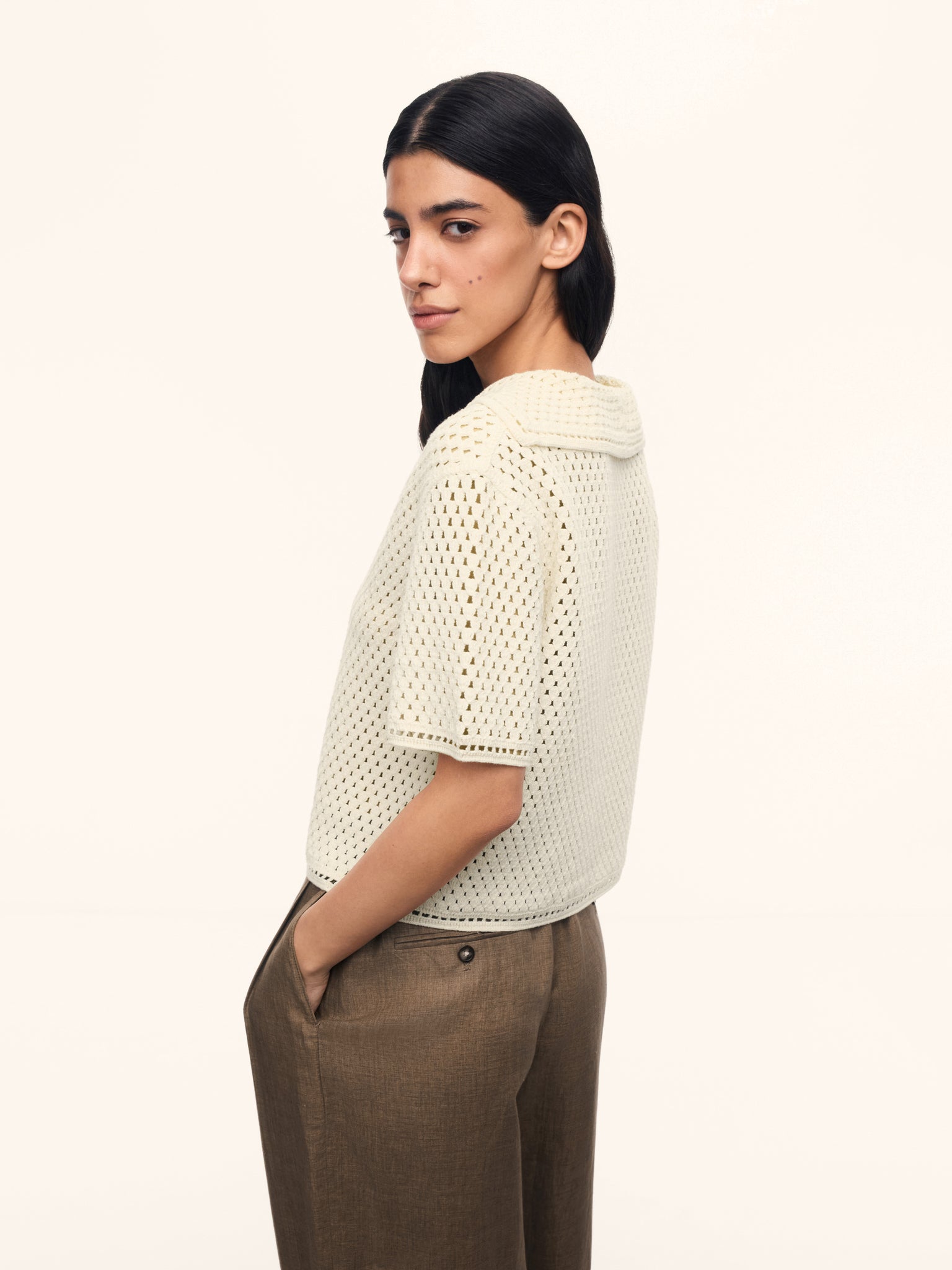 1. Создан в технике кроше, истоки которой — в традиционном ирландском кружеве и французских ремеслах. Специальные машины имитируют движение крючка, благодаря чему изделие выглядит как ручная работа
